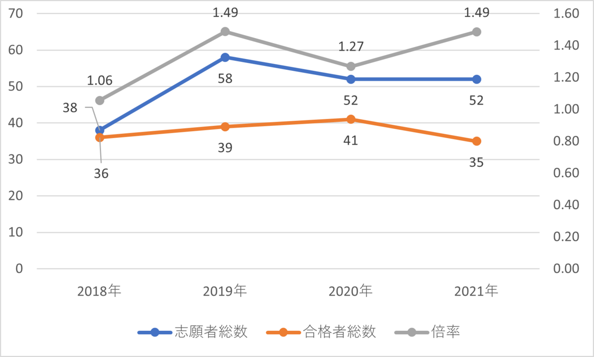 2022年度:合格者29名、受験者数39人以上、倍率1.34倍以上*10